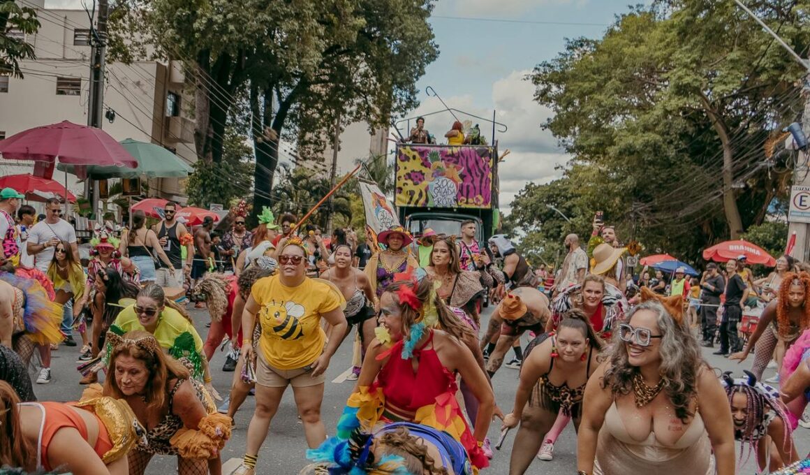 A chuva que caiu sobre Belo Horizonte neste domingo (8) não foi suficiente para esfriar a temperatura na Avenida Assis Chateaubriand. Em seu segundo desfile oficial, o Bloco Salada de Frutas confirmou sua vocação para grandes espetáculos, arrastando milhares de foliões pelo bairro Floresta. Com o tema “Frutas Selvagens: há uma alegria selvagem em estar vivo”, o cortejo foi marcado por um clima de comunhão, resistência e performances artísticas.